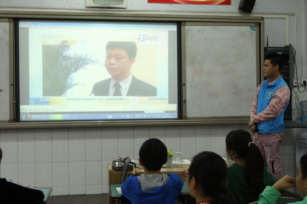 志愿者和同学们一起看视频