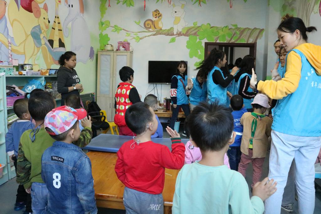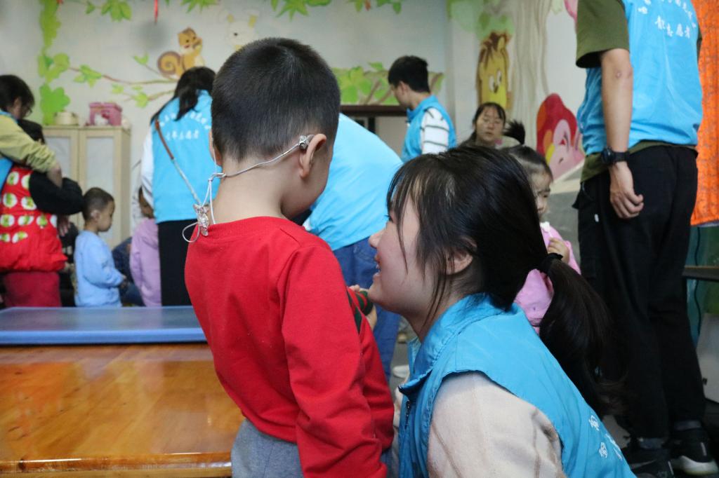 活动中,志愿者们分为两个小组,分别带领14名聋儿语训部的小朋友到达指定教室。他们用才艺吸引了小朋友们的注意,以游戏的方式拉近与小朋友之间的距离,积极鼓励小朋友与其互动。活动过程中,小朋友们脸上始终洋溢着幸福的笑容。最后,志愿者们表达了他们对小朋友们最诚挚的祝福,小朋友们也用拥抱传达了对志愿者的不舍和感激之情。