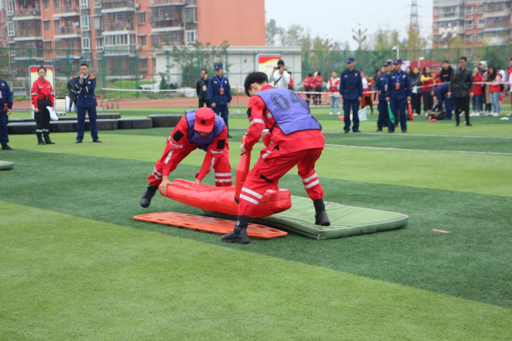 校区代表队共有22名运动员,皆是校区团委社团联合会军事青年协会配合校区保卫部层层选拔而出,具有较高的专业素质。在比赛过程中,运动员们充分将理论与实践相结合,竞速度、拼技巧,尽情地挥洒着青春与汗水。经过“绝地求生”、“远程供水”、“防护服接力操”、“铺设水带操”、“搬运假人”五个项目的比拼,校区代表队取得了团体第三名的好成绩。
