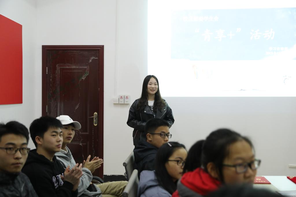 为帮助大学生更好的找准自身定位、规划大学生活,11月15日下午七点,校区团委学生会学习自律部在外语村101室举办了“青享+”活动,2016级优秀学生代表胡加敏担任此次活动主讲人。