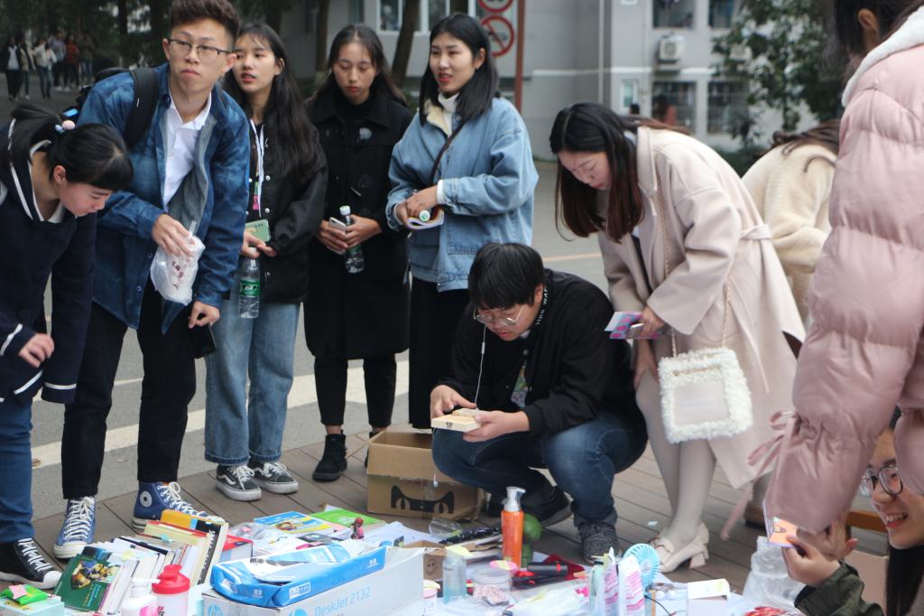 为了实现循环经济,助力构建两型社会,同时让同学们走出“宅”生活,强化同学们的表达沟通能力,11月16日至24日,每逢周末校区社团联七彩环保协会便于校区食堂门口开展“跳蚤市场”活动。