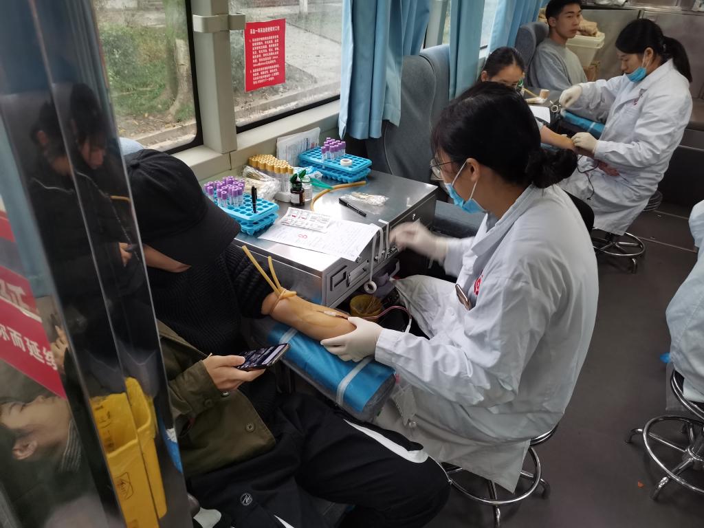 为培养当代大学生的爱心奉献精神,11月24日校区团委学生会青年志愿者协会于食堂门口开展爱心献血活动。
