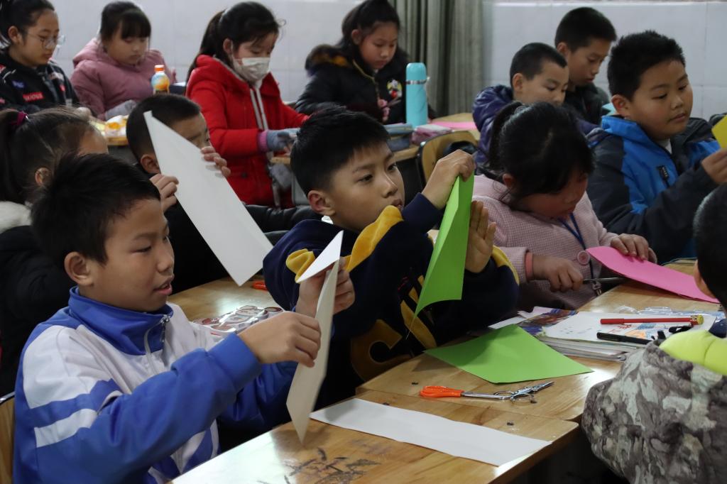 该活动是“益起来,艺起爱”项目的横向发展。活动当天,参与此次爱心支教活动的志愿者们在规定地点集合后,由活动负责人带队,一同前往舞凤第二小学。在本次班会活动中,志愿者们首先向小朋友讲解了剪纸艺术的来源与寓意,并和小朋友们进行了趣味问答的小游戏。带着孩子们进行剪纸的实际操作过程中,志愿者一边结合PPT详细地讲述了剪纸的步骤,一边地细心地叮嘱他们注意操作时的安全。小朋友们积极配合,最后都亲手制作出了自己心中满意的作品。