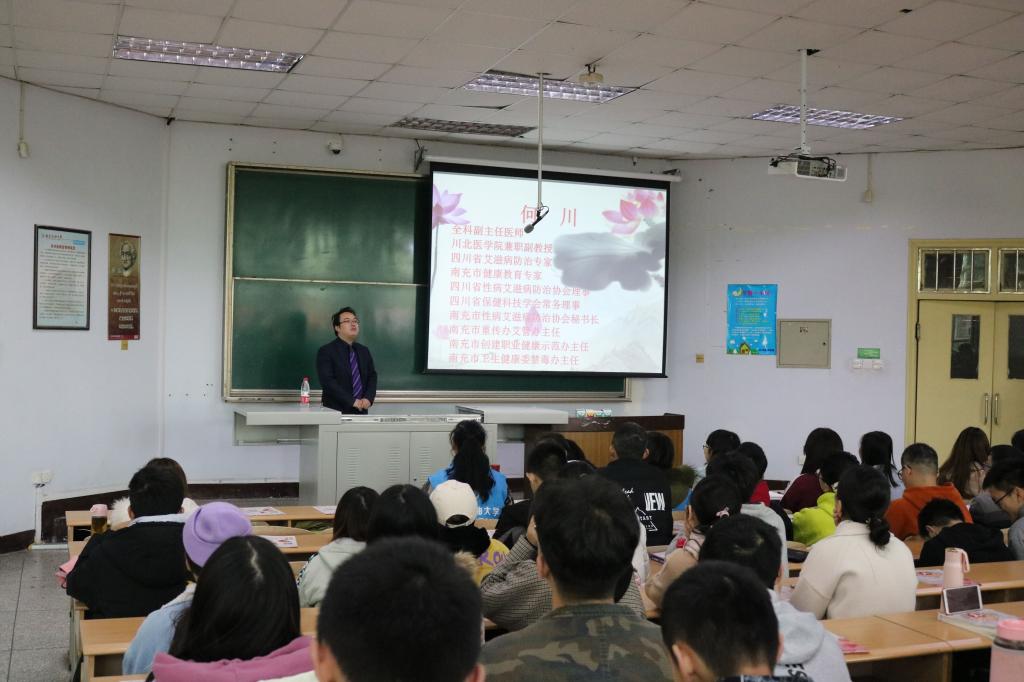 为提高大学生预防艾滋病的意识,校区团委学生会青年志愿者协会于12月1日世界艾滋病日在4416教室举办了艾滋病防治知识讲座。四川省艾滋病防治专家、南充市性病艾滋病防治协会秘书长何川老师担任本次活动主讲。