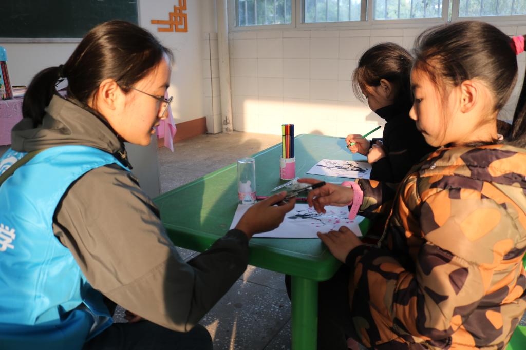 下午三点,志愿者们刚进入学校,小朋友们就投来期待的目光,脸上也洋溢着喜悦之情。艺术课堂准备工作就绪后,志愿者组织小朋友集合,带领小朋友们来到教室进行唱歌练习。不一会,一阵阵悦耳的歌声便传了出来。在课堂间隙,志愿者组织小朋友们开展击鼓传花游戏,游戏规则是传到花的同学要唱首歌,便可以得到糖果奖励。小朋友们都积极地参与其中,不仅调动了气氛,并且鼓励小朋友们学以致用。游戏结束后,小朋友们根据自己的喜好分别选择舞蹈、绘画、书法三个班级的其中一个,志愿者们对他们分别进行了相应的兴趣爱好教学。志愿者们十分用心地教授,小朋友们也极其认真地学习。