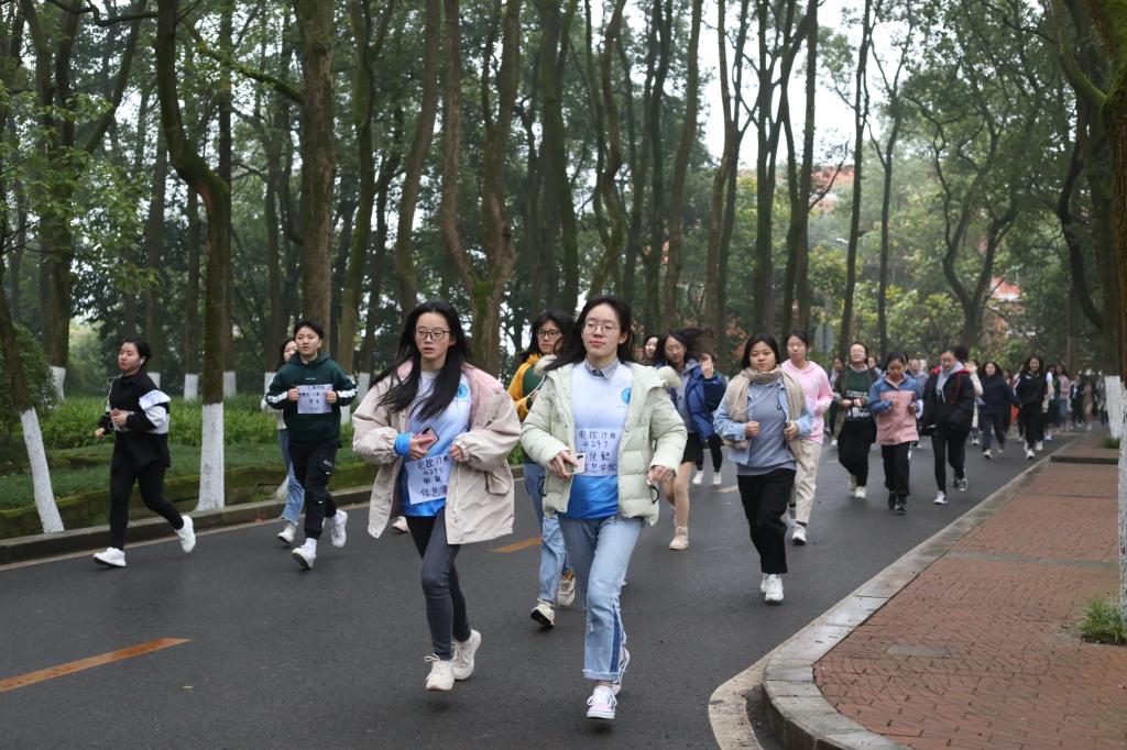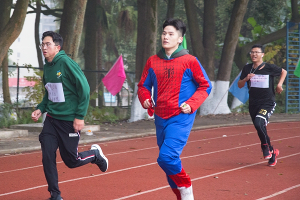 随着一声急促的发令声响起,参赛人员鱼贯而出,跃过起跑线,展开激烈角逐。选手们巧妙把握长跑节奏、迈着自信矫健的步伐,浩浩荡荡地奔跑在跑道上,先后经过第四教学楼、图书馆、食堂、西校门、校医院等地,最后返回足球场,构成了冬日校园里一道靓丽的风景线。