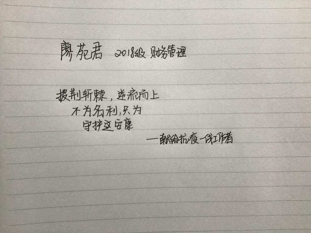 风雨同舟,齐心抗疫。此次活动不仅展现了同学们文学素养,也为其传递真情实感提供了一个良好的平台。凛冬离去,雪融草青,相信一定有新的相逢将温暖延续。