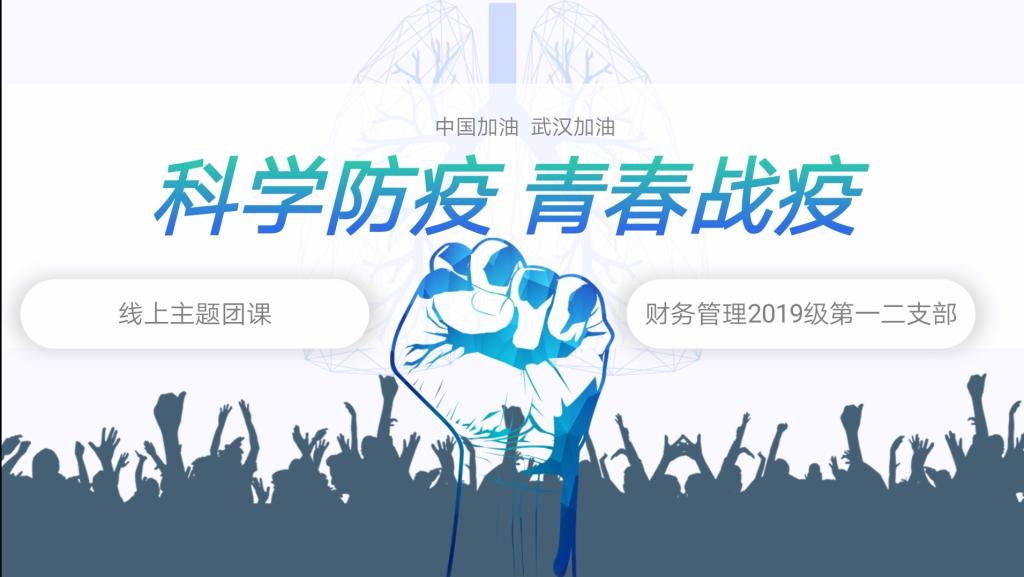 为积极响应共青团“青年大学习”号召,提高疫情期间学生的思想觉悟和理论修养,2020年3月17日晚,财经学院2019级财务管理专业一、二支部开展了“科学防疫,青春战疫”线上主题团课。