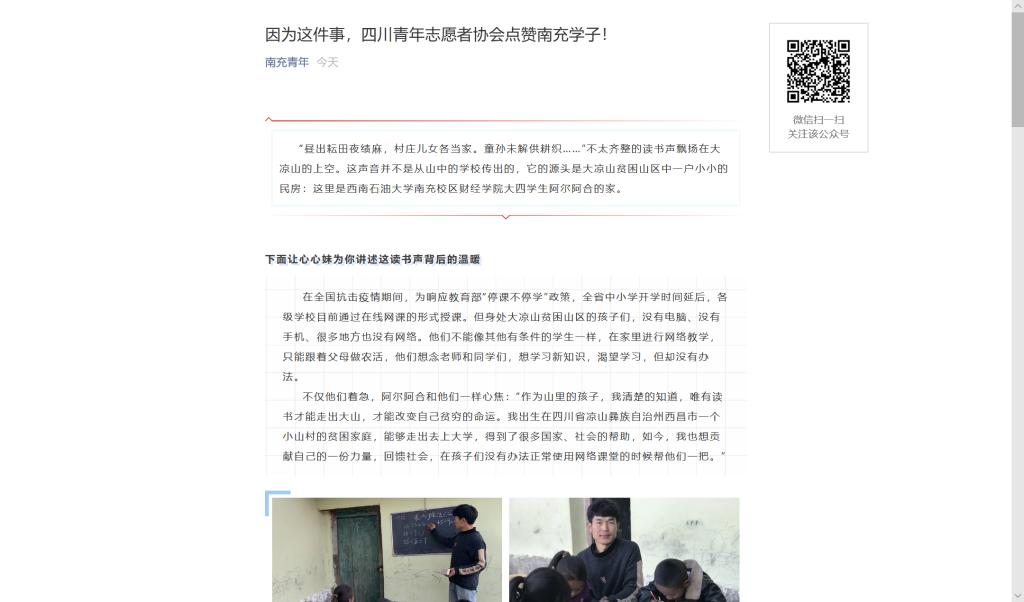 因为这件事,四川青年志愿者协会点赞南充学子!