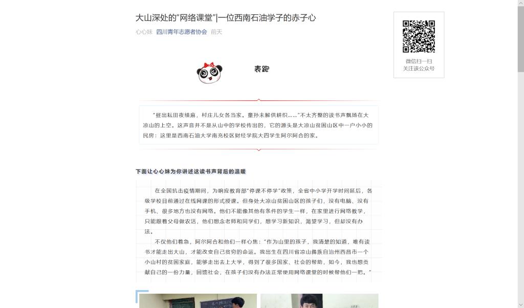 大山深处的“网络课堂”——一位西南石油学子的赤子心