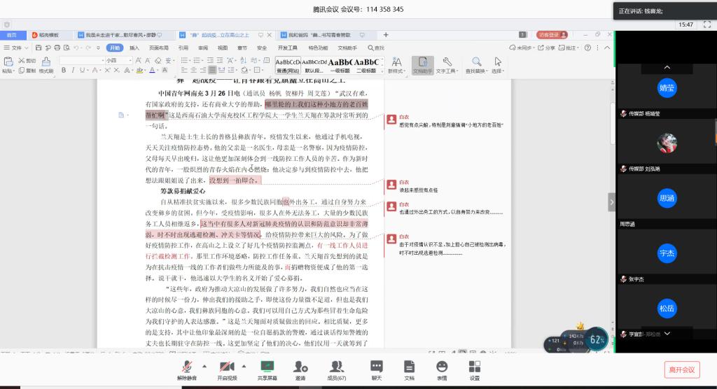为提升校区团委学生会成员关于中国青年网新闻稿撰写的工作技能,4月5日,校区团委学生会开展了中国青年网新闻稿撰写技能线上培训,此次培训由中国青年网西南石油大学通讯站站长蒋佳怿、中国青年网通讯员钱喜龙主讲,学生会各部门成员代表参与此次培训。