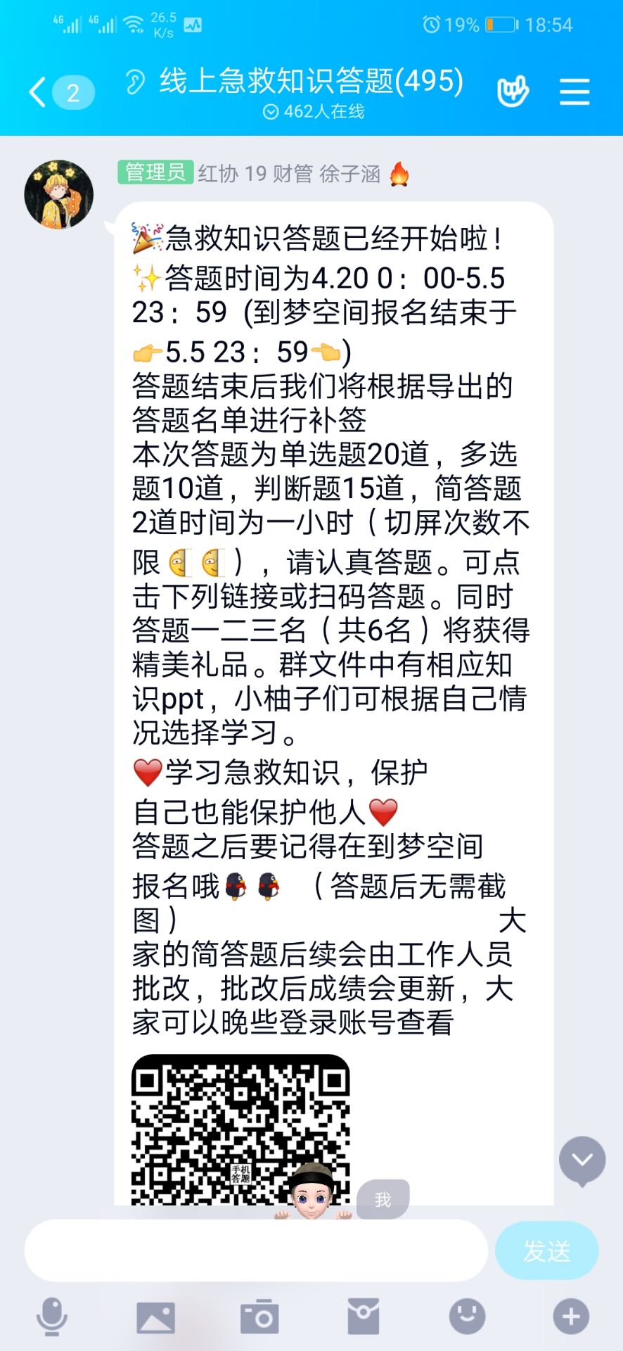 为了提高大学生面对灾害和突发事件时的急救能力,增加学生的急救知识。5月5日,由校区团委社团联红协志愿者协会举办的“线上急救知识答题”活动圆满结束。