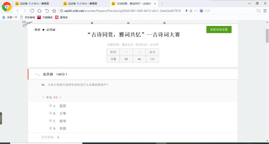 活动主要以在线考试答题的方式进行,参赛选手需在规定时间内完成答题,题目内容包含初高中所学的古文及古诗词。参赛者充分准备,认真复习,积极答题,诚实应试。活动结束后,获得前三名的参赛选手分别为:唐兰、李梦琴、杨璐微同学。返校后,协会将把精美奖品送至成绩优异的同学们手中。