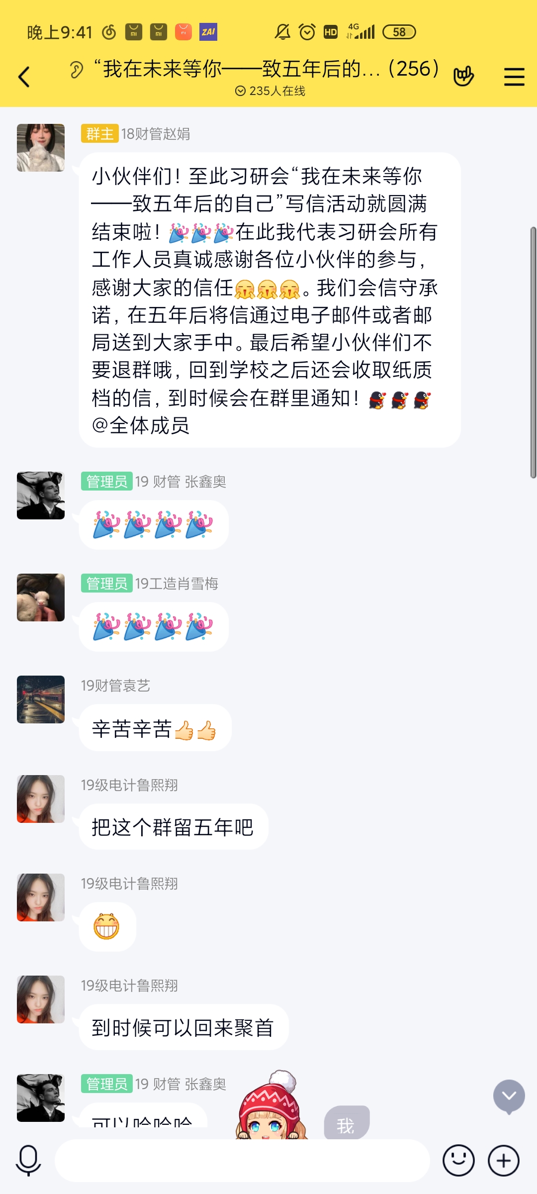 本次活动分为线上信件征集和封存两个部分,所有参与同学需在活动期间为五年后的自己写一封信。信的形式可以为word文档打印或者手写,内容主要包括对五年后自己的祝福、展望等。为了更好地保存信件,参与同学需要将信件上传到习研会官方邮箱中,由习研会统一保存,返校后,习研会将统一发放信封、收集纸质信件以及保存参与者的联系方式,以便五年后将信件的送达。同学们积极参与、认真准备,截至活动结束,习研会共收到来自各年级同学的信件200余封。