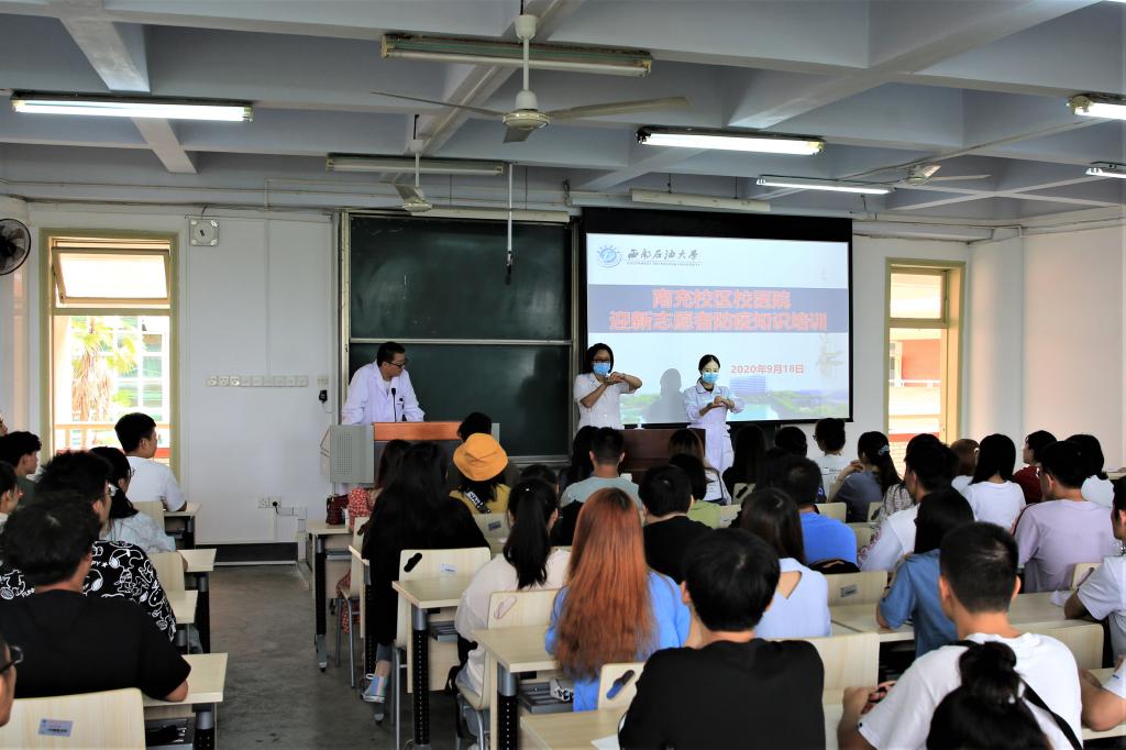 本次培训特邀校医院张青龙医生向志愿者讲解了有关疫情防控、医疗防护等相关知识,并配合医疗助理对“七步洗手法”和戴取口罩的正确方式方法进行演示。他还着重强调了“勤洗手、勤通风”、与他人保持安全距离等生活细节的重要性,提醒志愿者们提前做好防疫工作,树立从小事做起,保持警惕、不懈怠的良好意识,为迎新活动的顺利开展打下坚实的后备基础。