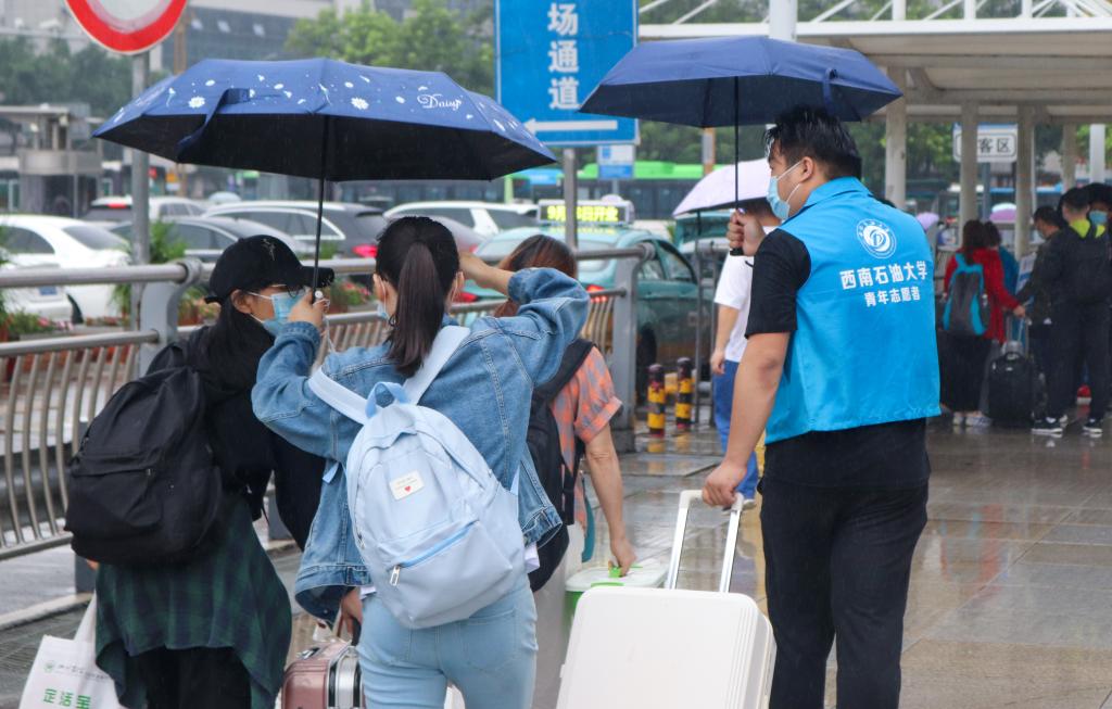 迎新过程中,校区团委积极行动,认真部署疫情防控措施。校医院医护人员及团委学生干部组成的志愿者各司其职,为到来的新生提供各项服务。校外,为了给新生提供更全面便捷的服务,南充站、南充北站、嘉陵汽车站分别设立了新生接待点,配备专属大巴车接新生入校。校内,志愿者在雨中为新生撑起雨伞,送去了温暖,各个迎新接待站热情服务,协助办理各种入学手续,为新生搬运行李,介绍学校情况,热情周到,让新生深深感受到了来自学长学姐的关怀。
