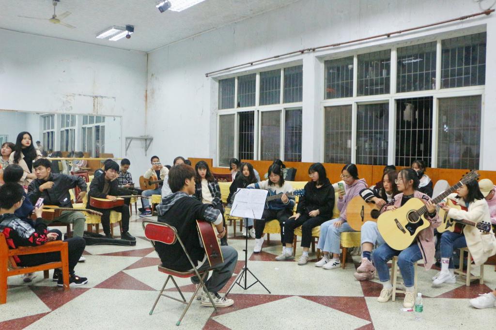 为了提高大学生艺术修养,培养同学们对乐器的兴趣。10月23日晚,由校区团委社团民主管理委员会音乐爱好者协会举办的“吉他教学”活动在大学生活动中心一楼成功举办。