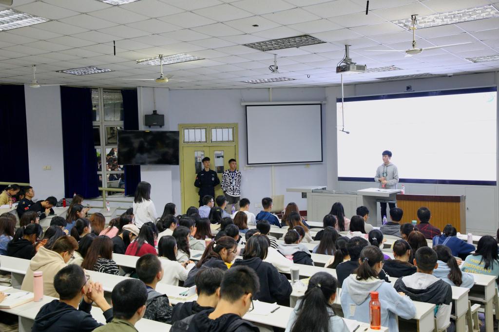 此次活动以主讲人分享自身经验展开,冯驰通过讲解“学习的方法技巧”、“如何获取奖学金”、“保研”等相关事项,为同学们分享了丰富的经验。会上,他重点指出:要成为一个优秀的学生,应该多方面发展自己,摆正好心态。他还鼓励大家要相信自己,勇于表现,做好学生工作,同时也要脚踏实地、互相尊重。面对同学们的提问,冯驰耐心地解答并提出了中肯的建议。活动结束后,与会人员合影留念。