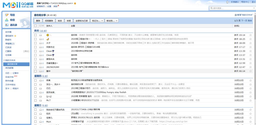 10月18日至10月24日,校区学生社团民主管理委员会青春飞文学社成功举办 “青年当有志,扶摇上青天”座右铭线上分享活动。本次活动旨在让同学们在重新审视自身价值的同时,相互激励,共同进步。