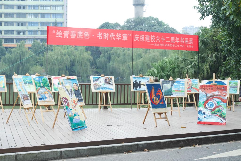 为庆祝建校六十二周年,进一步丰富校园文化生活,提高学生的艺术修养、审美情趣,创建文明的校园环境。11月1日至11月2日,由校区团委团学工作中心文宣部和校区学生社团民主管理委员会宣传部主办,社管会兰亭墨本书画协会协办的书画展活动在龙井湖观景台成功举行。