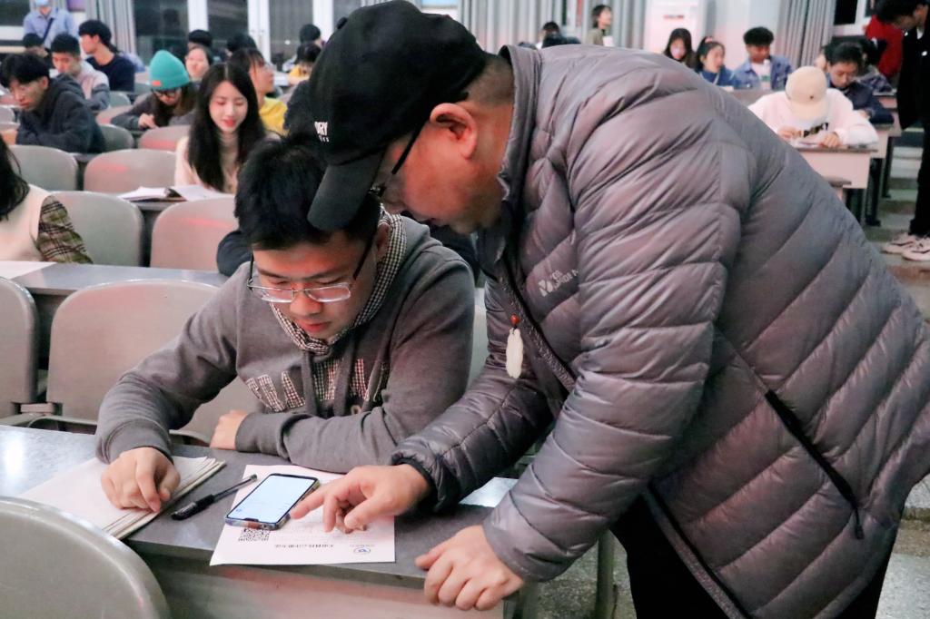 之后,卢奇部长的讲话由自己与西南石油大学的情结展开,并围绕天府科技云服务平台为大学生带来的两大优点,即“应用该app进行自我展示并向外界推广”和“更便携地获取知识,补充缺漏,更好地培养协调能力”进行讲解,直观地展示了该平台的实际意义。理论知识部分结束后,彭靖老师逐步展示了天府科技云注册流程,同学们积极与宣讲人沟通交流,咨询相关问题,宣讲人员耐心答疑,现场气氛和谐,秩序井然。