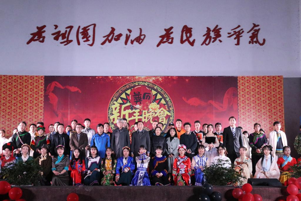 18时许,露天剧场外同学们有序排队等待进场。19时晚会正式开始。晚会由露天剧场晚会及足球场欢跳达体舞两部分组成。一曲彝族歌曲《喜德拉达》拉开第五届彝历新年晚会帷幕。演员们热情奔放的表演,展现校区各民族丰富多彩的文化,涌动着中华民族文艺百花齐放的活力。藏族歌伴舞《尼玛情歌》彰显雪域高原的风土人情;小品《脱贫》生动诠释了新时代全面建成小康社会“一个也不能少”的精神内涵,展现了彝族同胞脱贫致富的新面貌。吉他弹唱《周三的情书》演奏出少年心事,引人入胜。在接下来的“时装秀”中,二十二位模特身着民族传统服饰,为大家带来一场视觉盛宴。经过现场观众在线投票,13号选手马阿呷和8号选手杨洪杰夺得“最美美民族服饰”桂冠。晚会下半场,电子琴独奏《夜曲》在热火朝天的晚会中别具一格,每个音符都牵动着在场观众的心。舞蹈串烧《藏+蒙古+彝》,热情洋溢的舞蹈动作结合少数民族地方特色带给观众极佳的视觉体验。说唱《New Beginning》将彝族语言与潮流元素融合,点燃了全场观众的激情;音乐剧《1998,请回答》让我们看到物质条件极其匮乏的年代青年人追梦求学赤子心。压轴的舞蹈《火把妞妞》和大合唱《留客歌》以火热的舞姿、极具张力的歌喉调动观众的情绪,赢得现场掌声连连。