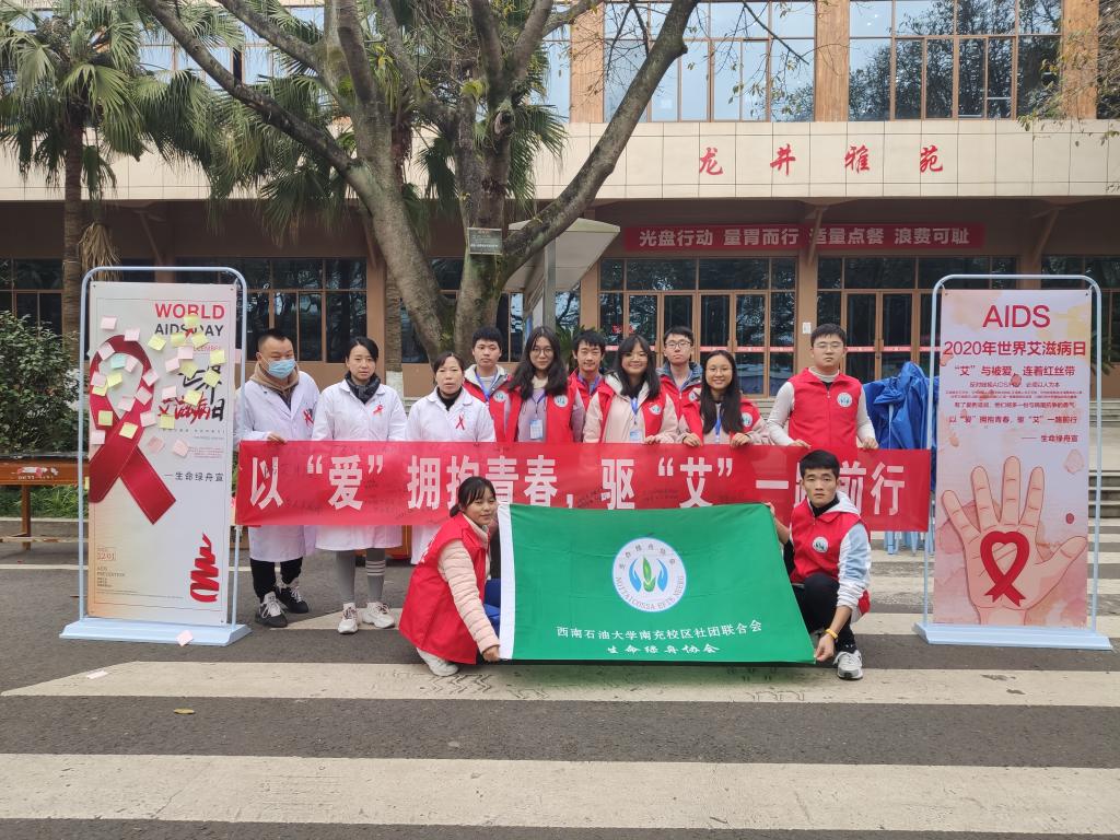 为提高学生自我防范意识,营造健康、文明、向上的校园文化氛围,12月1日,校区社管会生命绿舟协会联合西南石油大学南充校区校医院于外语村旁成功举办“飘扬的红丝带”防艾活动。