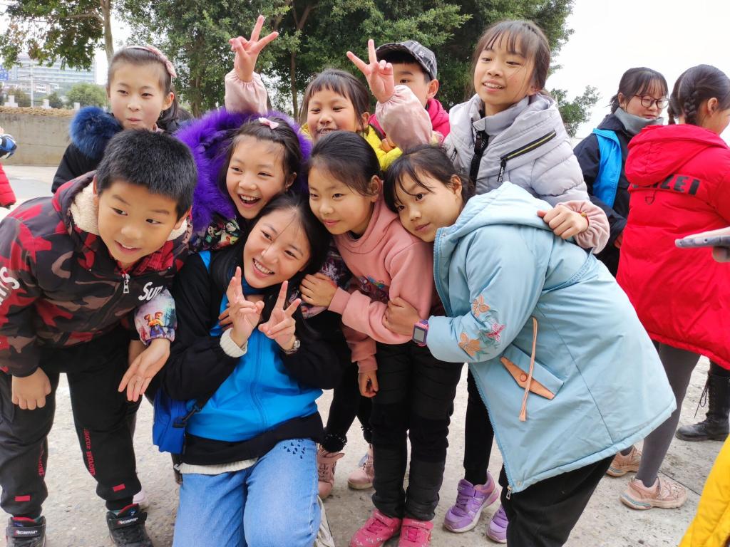 志愿者和小朋友一起互动