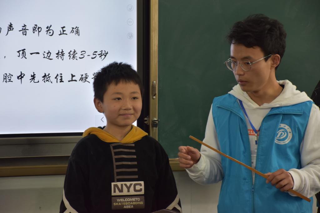 志愿者纠正同学发音问题