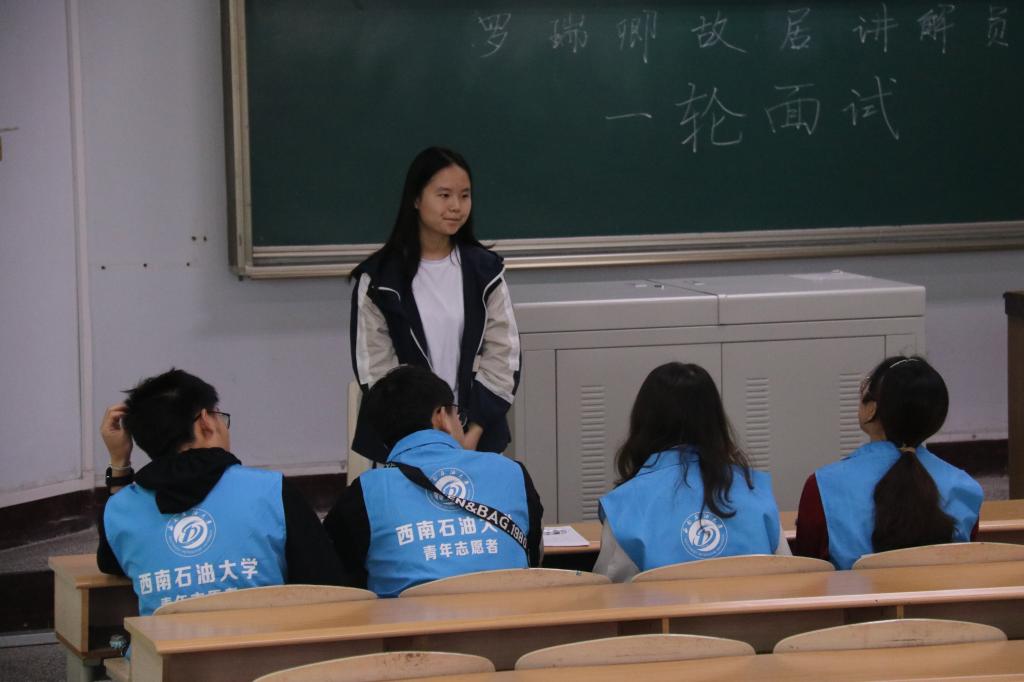 面试开始,同学们以简单的自我介绍开场,随即向评委们介绍了罗瑞卿将军的生平事迹。接着,评委们向面试者提问,在考察他们基本志愿素养的同时引导他们对志愿工作进行了更深一步地思考。最后,评委们给同学们分发了罗瑞卿故居的相关资料,让同学们熟悉罗瑞卿故居的相关事项,然后开始上台演讲,同学们的演讲让评委们感受到了对革命英雄的怀念和尊敬之情。