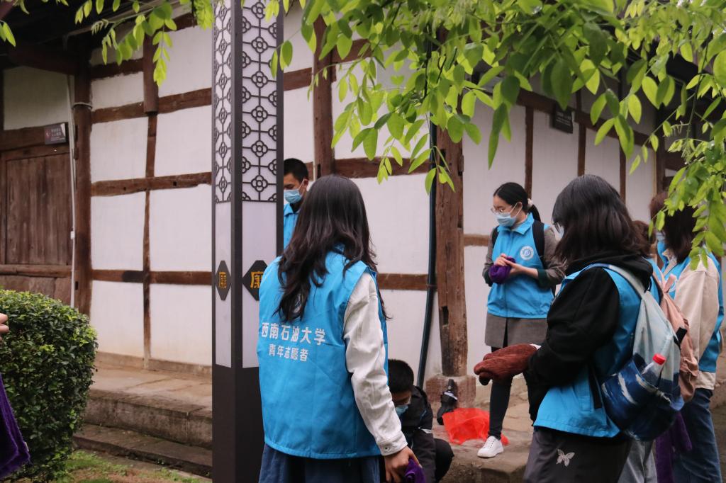 志愿者到达故居后,通过参观故居以及展厅,了解到了罗瑞卿将军的生平事迹以及不菲功绩,数位志愿者通过台前的智能设备向罗瑞卿将军献花和留言表达敬意。随后,志愿者们分工合作、相互配合,对故居进行了全面清扫。当时小雨淅淅沥沥,志愿者仍然仔细打扫着故居,丝毫不影响大家向先烈致敬的行动。