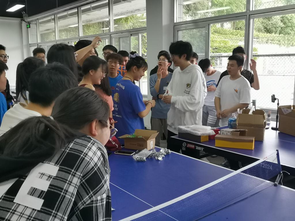 为了加强各年级同学们间的球技交流,锻炼同学们的身体素质。4月24日,乒乓球协会在校体育馆乒乓球室开展了“乒乓球挑战杯”特色活动。