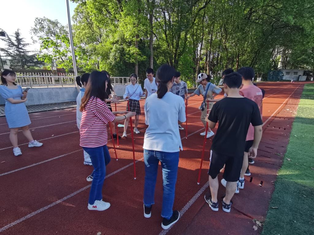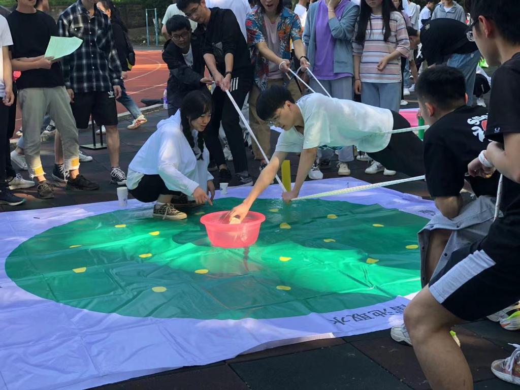 活动以“团结、共进、超越”为主题,在校区范围内筛选了200余人参加。在欢快的“扑克牌分组”热身活动中本次活动拉开了序幕,吴静老师和江雪老师就比赛规则和注意事项进行了讲解,随后16个小组的队员们全身心投入到比赛进程中。大家相互配合,相互鼓励,相互加油,整个赛场紧张而有序。据悉,本次活动共有八个项目任务,分别是挑战自我、摸石过河、你演我猜、不倒森林、蚂蚁翻叶子、能量传输、雷池取水,巧接彩珠。所有任务逐项进行,完成时间最短的队伍为优胜队。