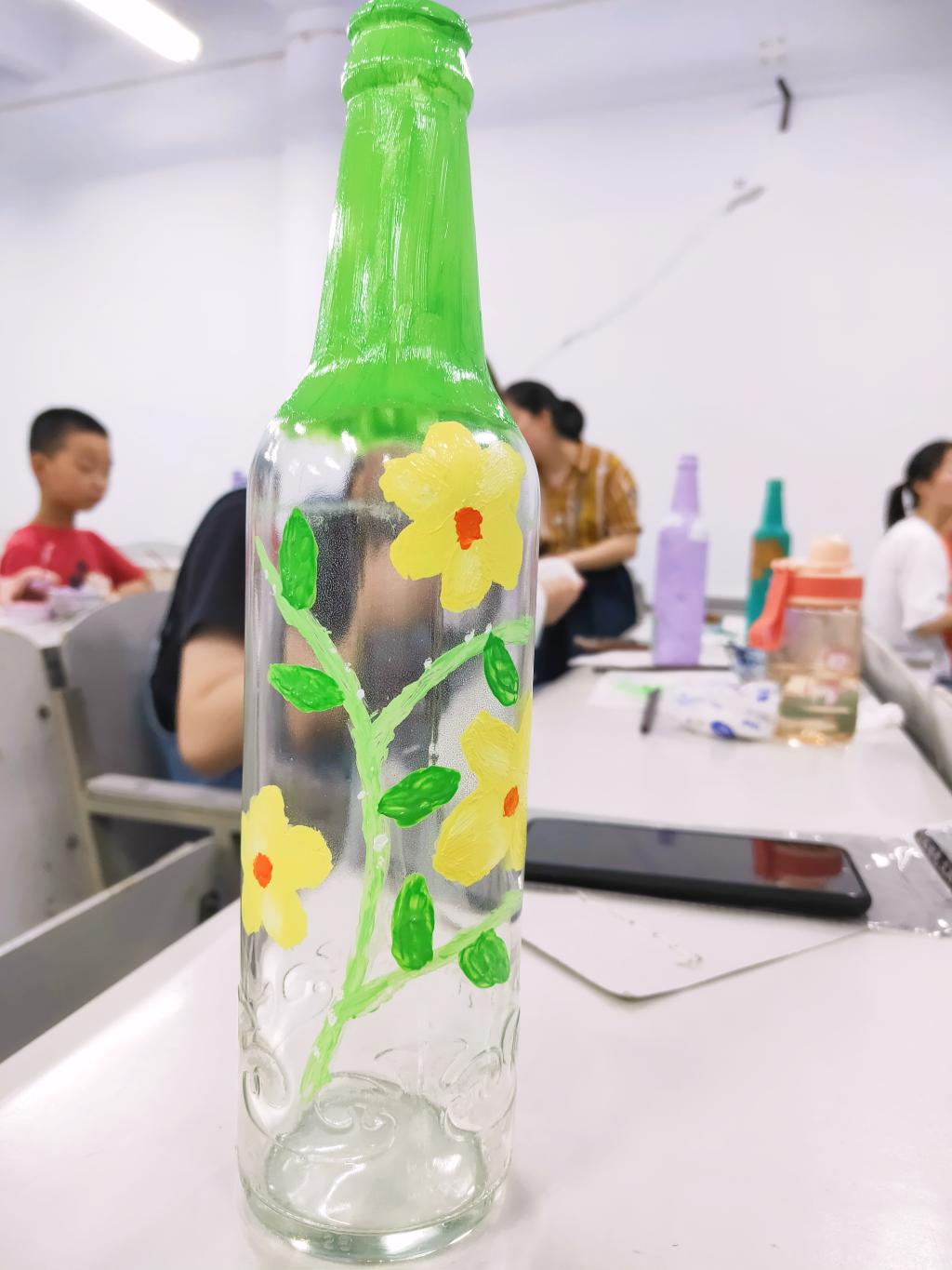 本次活动紧扣环保主题,用制作环保小道具的模式吸引会员们参加。活动过程中,协会理事从颜料配比和涂画技巧的角度,向会员演示如何用颜料修饰废旧的玻璃瓶,使其变成集实用、观赏于一体的装饰品。其中一位会员表示:“此次活动给我带来了很多乐趣,我真切感受到环保就在生活当中,期望越来越多这样的活动在校园开展。”