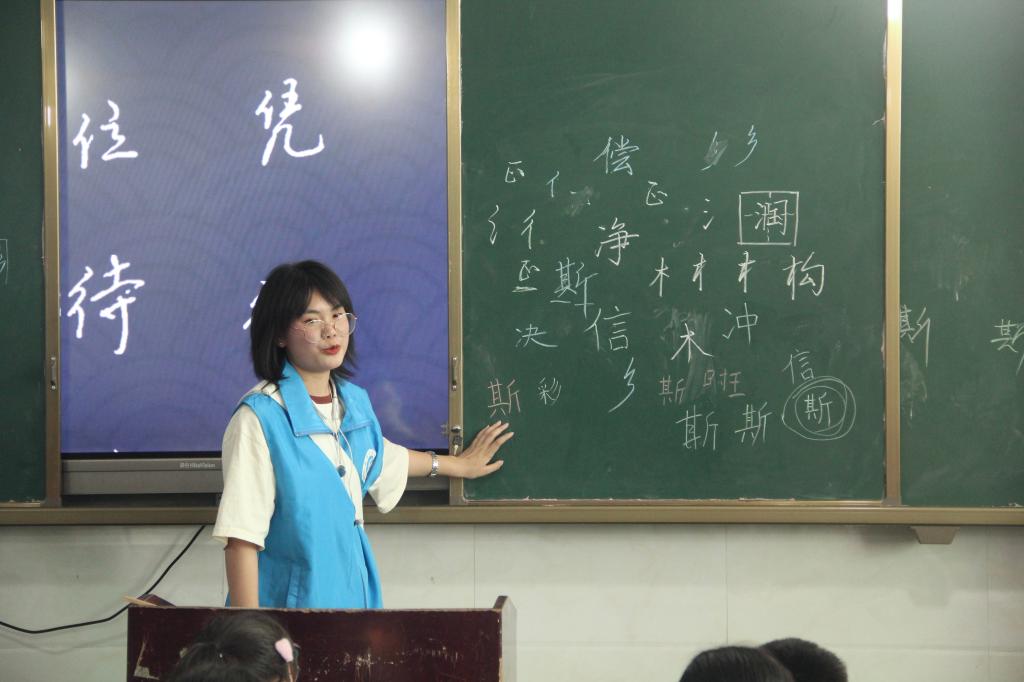 志愿者正在讲解汉字笔画