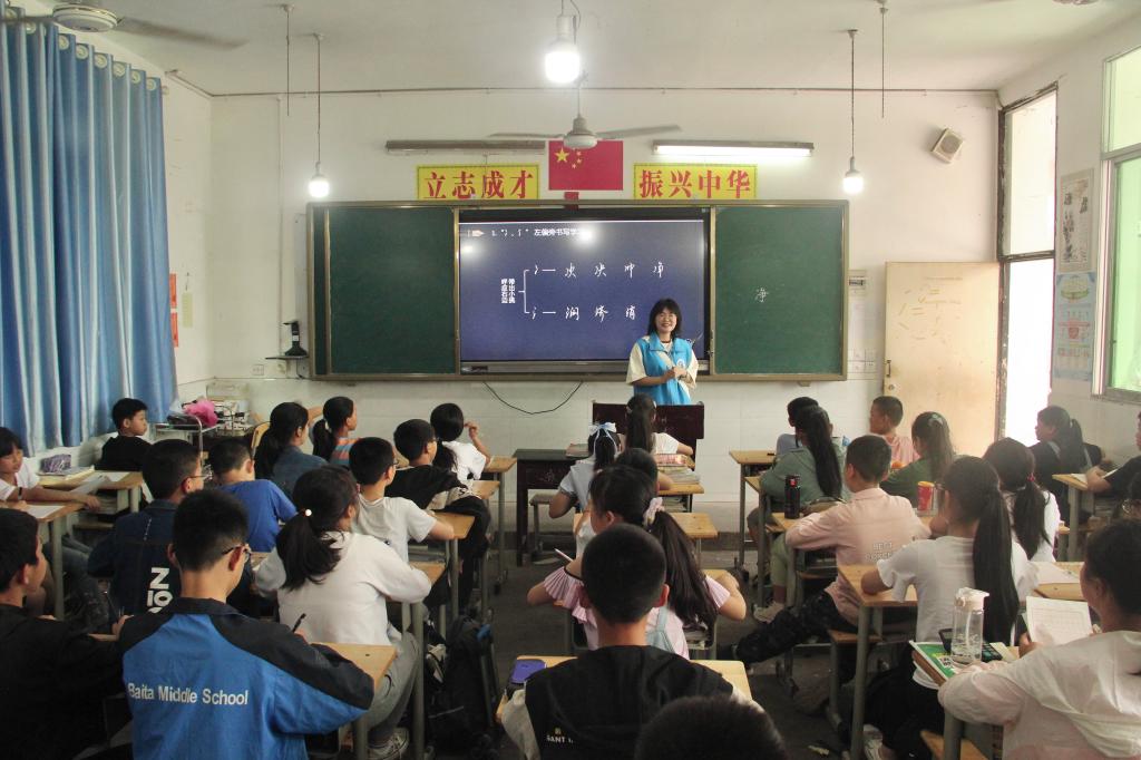 活动过程中,志愿者结合PPT向同学们分享有关书法的历史人物以及他们和书法的故事,随后向同学们讲解相关书法知识,并带领同学们在纸上练习书法。教学过程中,同学们全神贯注,积极配合,与志愿者一同探索中国传统艺术的魅力。