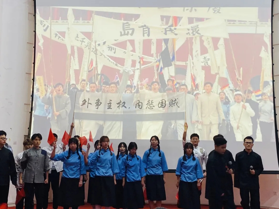 信息管理与信息系统专业2020级同学带来了以“新青年 习党史”为主题的班会,通过五四运动的情景剧,让在场观众穿越几十年时光 回到最初:青年学生们得知中国作为战胜国在巴黎和会上的合理述求没有被采纳,纷纷义愤填膺,奔走呼号,涌现出一批为追求民族独立和国家富强而积极探求救国救民真理的新的先进分子,数十万学生英勇地走在运动的前头,成为运动的先锋。