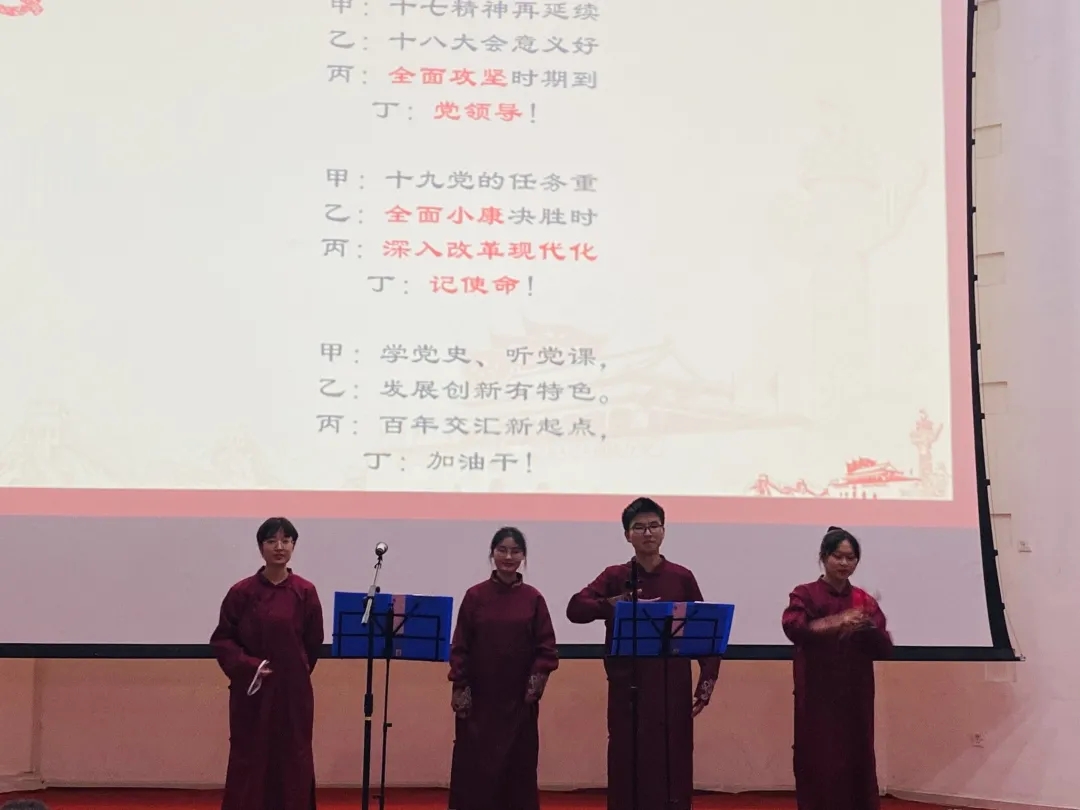 城乡规划专业2020级同学为我们带来——“党史、国史、天下史,史史牢记”。表演者借曲艺三句半的形式为我们简洁明了地展现了党史和新中国史等历程。作为一名大学生,要想为中国梦贡献自己的力量,必须先一步一步充实自己,强大自己,正是因为有梦想,我们才历经坎坷依然前行,正是因为有梦想,我们才历经沧桑信心不改。