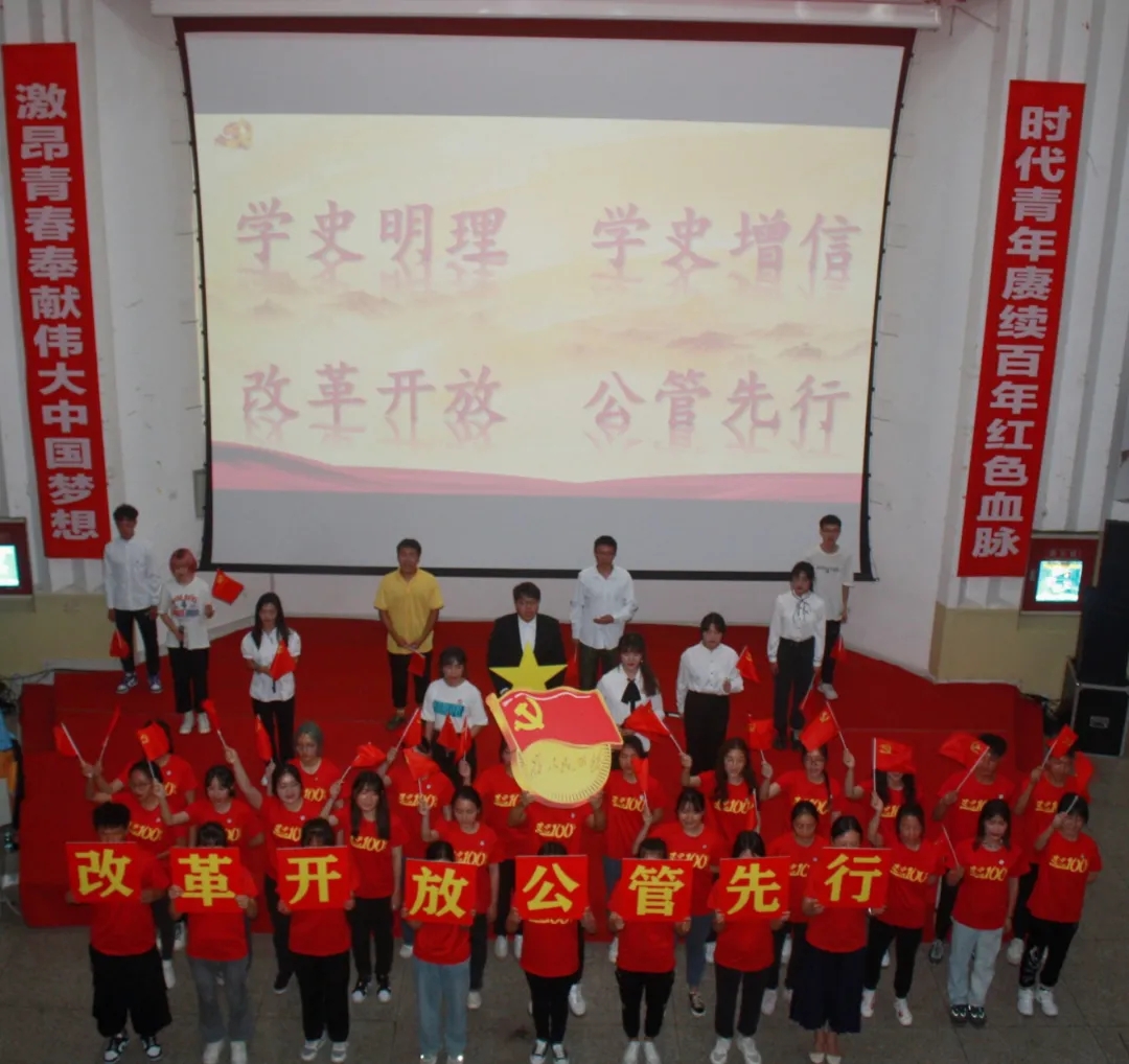 开场视频和《凤凰涅槃》朗诵引燃现场气氛后,公共事业管理专业2020级展演了中国改革开放史主题班会——迎改革浪潮,创时代辉煌的开始。公管学子借助情景剧的方式向我们展现改革开放为我国发展带来的一切便利及知识分子下乡带动人民从精神上摆脱精神上的贫困;“跟着共产党才有新中国”,他们用直击人心的歌声证明公管学子紧跟时代步伐,关注国家大事,如同他们的标语那样——学史明理,学史增信,改革开放,公管先行。