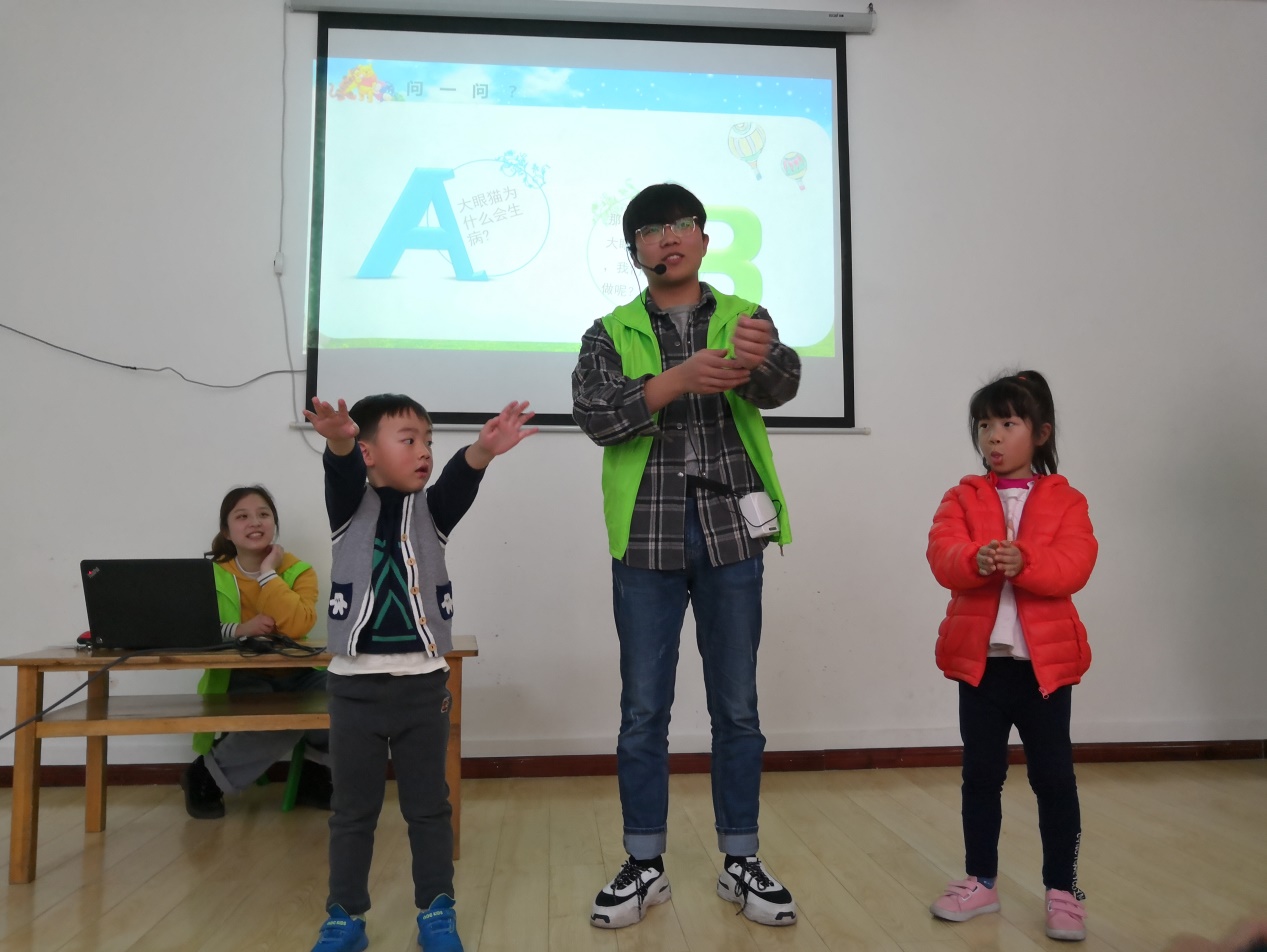 活动中,志愿者们给小朋友们讲了患流感的一般症状和如何预防流感等问题,并采用提问的方式和他们互动。在互动的过程中引导他们要保持良好的个人卫生,均衡饮食、尽量不到人多拥挤得地方等。