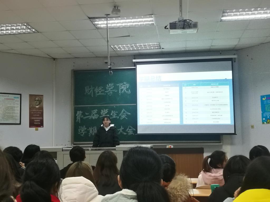 为了推动我院学生会工作的发展,提高我院学生会工作质量,12月26日晚,财经学院在4416教室召开了第二届学生会学期总结大会。财经学院辅导员谢曜励、曾和丽和学院学生会全体成员参加本次会议。