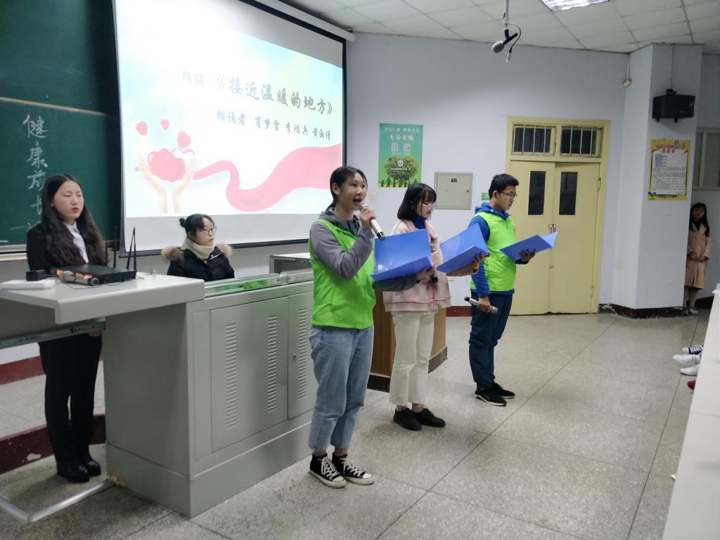 班会介绍了艾滋病在中国的发展和防控现状、传播途径等内容。李鸿兵、肖梦雪、黄淑倩朗诵了《接近温暖的地方》,汪旭、刘芮伶、李霜演唱了歌曲《拥抱你》。班会还对艾滋病国际符号——红丝带作了介绍,让同学们进一步了解了红丝带的由来、发展和意义。在最后的有奖竞答环节,同学们积极互动,现场气氛热烈。