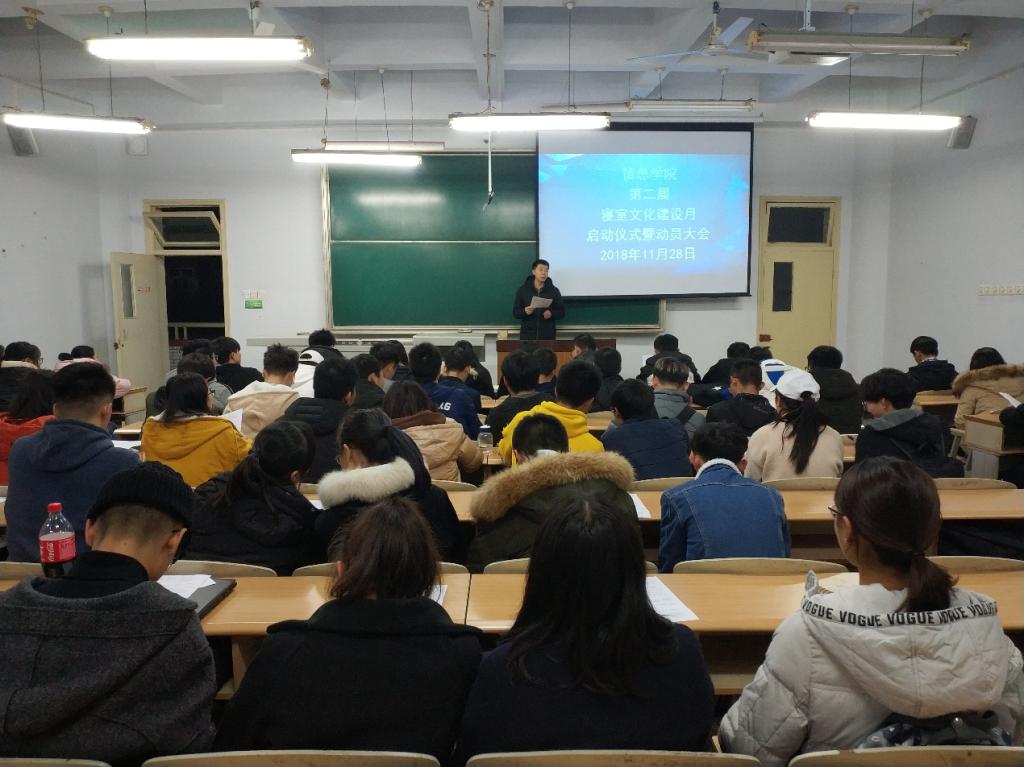 为进一步丰富学生宿舍文化生活,构建文明和谐寝室氛围,11月28日晚,信息学院在4514教室召开了学院第二届“寝室文化建设月”启动仪式暨动员大会。信息学院辅导员刘强和各班生活委员、班长参加会议。