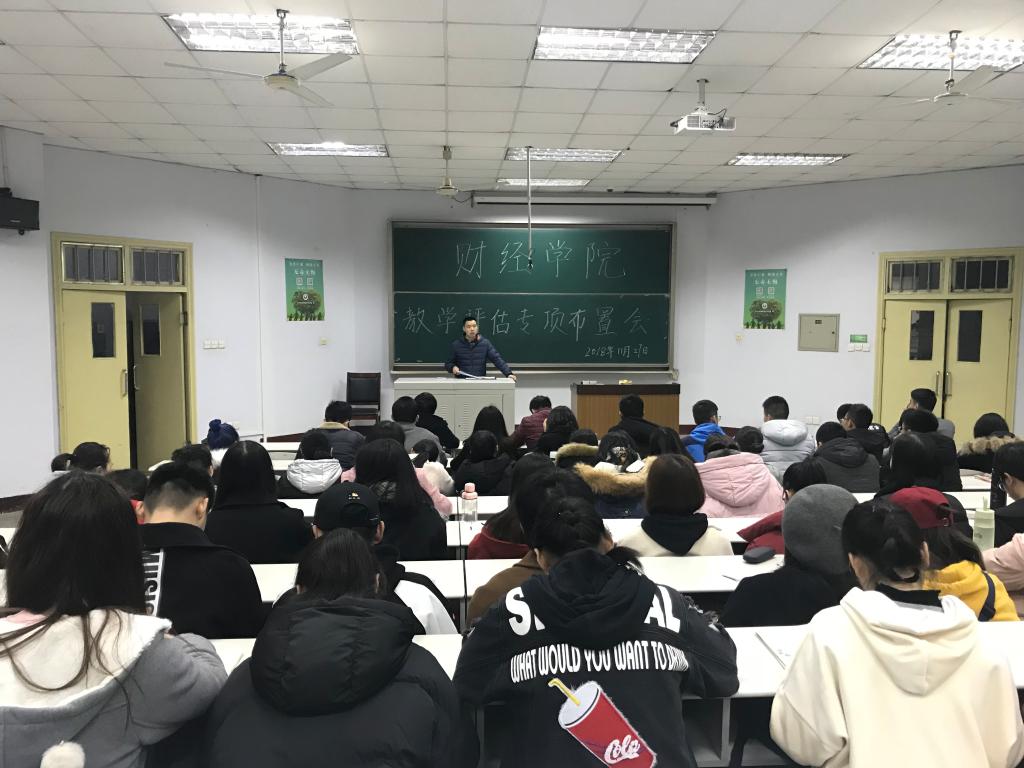 为积极迎接本科教学工作审核评估工作,明确学院迎评工作的目标和任务,11月27日晚,财经学院在第四教学楼4316教室召开了学院教学评估专题讨论会。学院全体辅导员和学生骨干参加了会议。会议由学院学生工作办公室副主任杨智光主持。