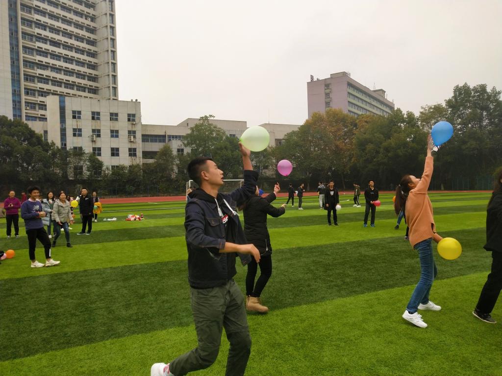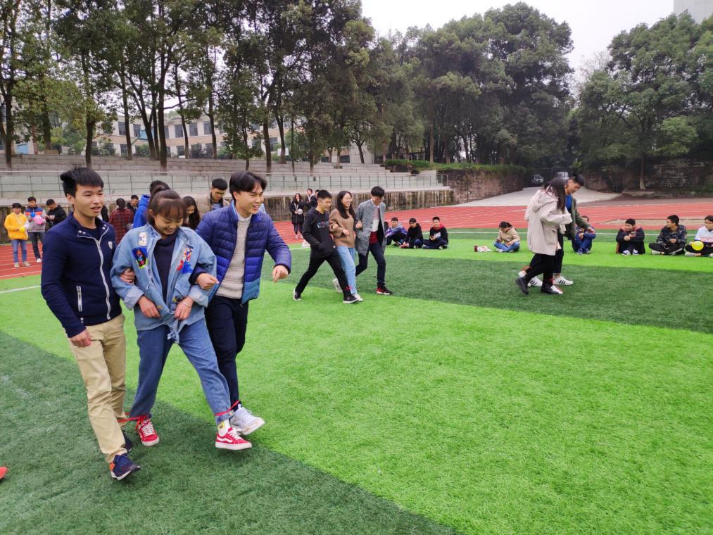 此次联谊安排了运气球、合作运气球、两人三足和对眼憋笑四个游戏。同学们积极参与,配合默契,观看的同学们也为比赛中的同学加油打气,场面十分热闹,不时传来阵阵笑声。