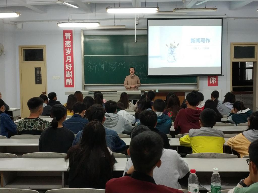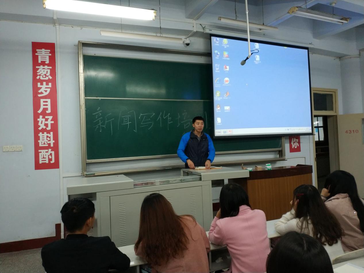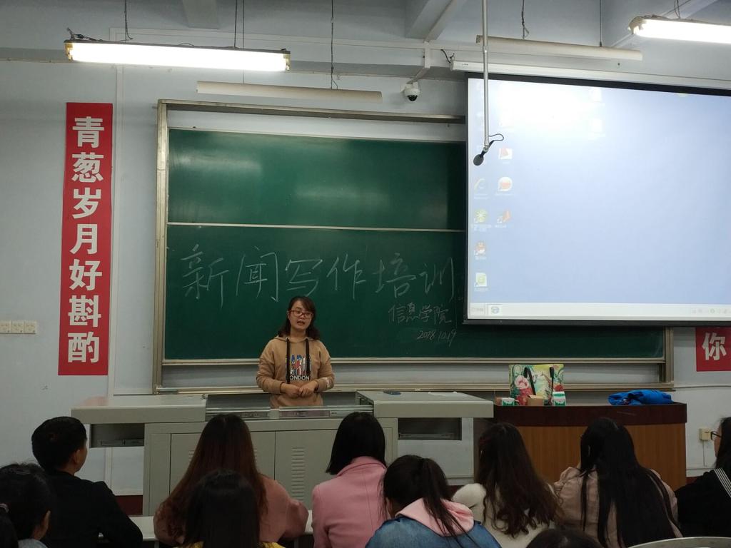 为提高大家的新闻写作能力,提高我院新闻稿质量,10月19日晚,信息学院在第四教学楼4310教室进行了新闻写作培训。信息学院辅导员胡丹、刘新晖、唐明森以及刘强老师为大家进行培训,信息学院全体宣传干部参加培训。