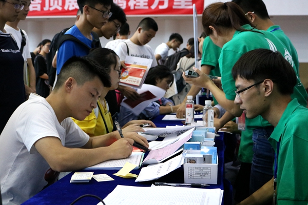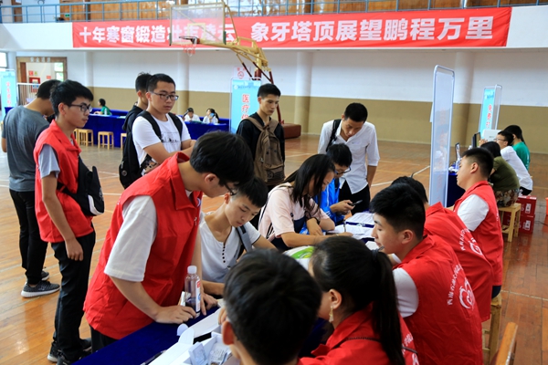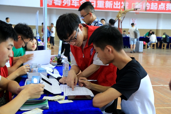 校区在校外各迎新点投入了多辆迎新专用车往返迎接新生及新生家长;新生宿舍内军训用品和卧具新生进校前就摆放到位。校区学生工作部(团委)在新生报到大本营专门为贫困学生开通“绿色通道”办理点,提供绿色通道办理和咨询服务,让学生家长了解国家助学政策。为了方便新生报到缴费,财务处推行的智能自助缴费平台及自动批扣系统,让学生缴费实现了完全自助化。