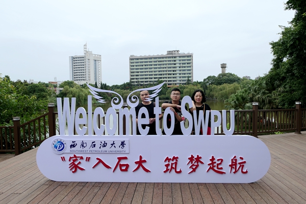 为了让新生感受“家”的温暖,9月7日晚上,南充校区专门为6号、7号过生日的新同学策划了一次别具情调的生日聚会。党群工作部(工会)、学生工作部(团委)在龙井湖观景平台上设计摆放了“Welcome to SWPU”立体合影墙,“家入石大,筑梦启航”激励新生奋发努力,进一步浓厚校园“家”的氛围。体育馆门前放置了以龙井湖为背景,印有学校Logo、石大精神等内容的巨幅新生签名留影墙,让新生留下自己入学时的最美的记忆。