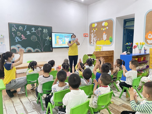 小朋友入园后,各班教师根据幼儿不同年龄阶段的认知特点,形象生动地开展开学第一课,耐心讲解幼儿园常规安全教育,向小朋友介绍新冠疫情相关知识以及在日常生活中如何做好自我防护的措施,让孩子在教育活动中提高自我保护意识,形成良好的卫生习惯。
