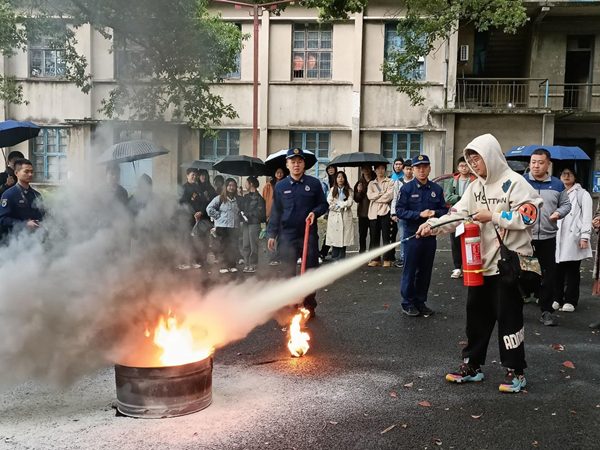 培训过程中,消防员强调了安全的重要性及火灾对人民群众造成的危害,介绍了生活中容易忽视的火险隐患,强调了寝室消防安全重点注意事项。并以互动的方式普及了灭火器的具体使用方法,在消防员们的指导下,全体参训人员参与了灭火器实操演练,掌握了灭火器操作使用基本技能。